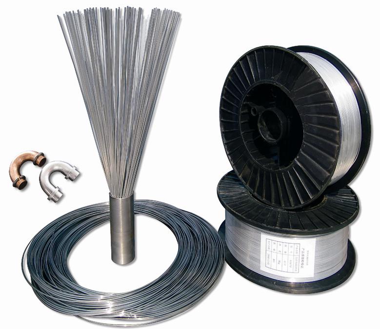 Filler metals for copper aluminium joint is a kind of seamless flux-cored wire with consistent filling coefficient, its mainly element ingredients are zinc, aluminium, copper, and noncorrosive fluoride, and the welding processing property, mechanical properties and electrical conductivity are better than Zn-Cd and Zn-Sn-Cu series. There are 5 categories of filler metals for copper aluminium joint, such as Al-Si, Zn-Al, Zn-Al-Si, Zn-Al-Ag and Zn-Al-Cu. In addition Zn-Al and Zn-Al-Ag are the most widely used industrial one now. Filler metals for copper aluminium joint have a wide application in the field of electricity and electrical equipment, stainless steel products, refrigeration system, hardware product. Filler metals for copper aluminium joint can be preserved for long-term without any antiseptic, and be bent into a ring without powder loss.